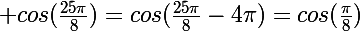 =cos(\frac{25\pi}{8}-4\pi)=cos(\frac{\pi}{8}))