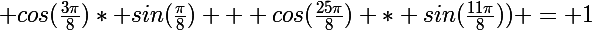 * sin(\frac{\pi}{8}) + cos(\frac{25\pi}{8}) * sin(\frac{11\pi}{8})) = 1)