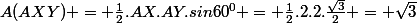 J'arrive à trouver que AXY est un triangle équilatéral, et A(AXY)= x²;)3/4