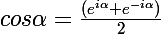 cos(b)=\frac{exp{ia}+exp{-ia}}{2} \times \frac{exp{ib}+exp{-ib}}{2}=\frac{(exp{ia}+exp{-ia})(exp{ib}+exp{-ib})}{4}=\frac{exp{i(a+b)}+exp{i(a-b)}+exp{-i(a-b)}+exp{-i(a+b)}}{4}=\frac{2cos(a+b)+2cos(a-b)}{4})