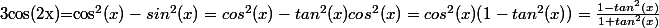 =cos^2(x)-sin^2(x)=cos^2(x)-tan^2(x)cos^2(x)=cos^2(x)(1-tan^2(x))=\frac{1-tan^2(x)}{1+tan^2(x)})