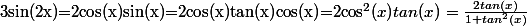 =2cos(x)sin(x)=2cos(x)tan(x)cos(x)=2cos^2(x)tan(x)=\frac{2tan(x)}{1+tan^2(x)})
