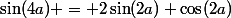 Voila j'ai un soucis avec mon DM, je dois montrer, avec les formules de duplications, que sin4a= 4sina cosa(2cos²a -1)