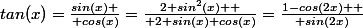 ={sin(x) \over cos(x)}={2 sin^2(x) \over 2 sin(x) cos(x)}={1-cos(2x) \over sin(2x)})