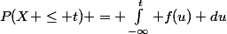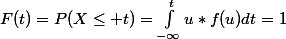=P(X\leq t)=\int_{-\infty}^{t}{u*f(u)dt}=1)