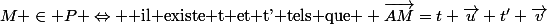 Justifier que M appartient au plan P ssi il existe deux réél t et t' tel que