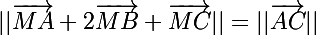 \\ vecteur MA+vecteur 2MB+vecteur MC\\ =\\ vecteur CA\\