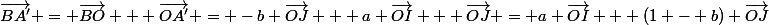 1)a) Justfier l'existence de deux points a et b tels que: /vec{OA}=a /vec{OI} et /vec{OB}=b /vec{OJ}