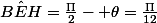 1. montrez que (vecteurs EB ; vecteurs EH )= pi/12. en fait dans mon message j'ai traité la question (vecteurs HB ; vecteurs HE )= pi/2 ... , désolé pour cette erreur )