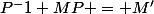 ou P est la matrice de passage, M ta matrice, et M' ta matrice diagonalisee