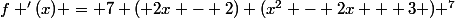 alors f'x) = 8 (x^2-2x+3)^7 car c'est de la forme a^n non ?