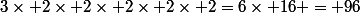 nous avons : pour le premier chiffre 3 choix , pour le 2 ème 2 choix , pour le 3 ème 2 choix , pour le 4 ème 2 choix , pour le 5 ème 2 choix , pour le 6 ème 2 choix .