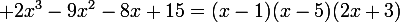 inéquation : 2x^3-9x²-8x+15> ( ou égale ) 0