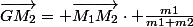 Il s'agit d'étudier la quantité de mouvement sur l'une des deux particules (M2) dans le référentiel du centre d'inertie (G). Les deux particules (M1 et M2) sont animées des vitesses
