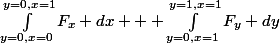 c) suivant Oy (de 0 à 1) puis suivant Ox (de 0 à 1)