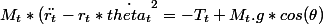 On a donc m*(2*r'*r*theta'+r²*theta") = -r*m*g*sin(theta) ce qui conduit à