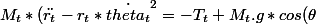 La ficelle est parfaite, donc T_t=T_m=T et r_t"=-r_m".