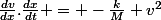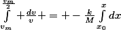puis on intègre des 2 cotés : M/k [1/v] = T