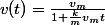 La loi de vitesse que tu trouves est juste. On peut l'écrire en faisant apparaître Tau, ce qui donne une indication sur la signification physique de la loi, soit v(t) = Vm/(1 + t/Tau).