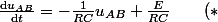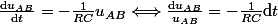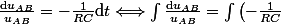 {\rm d}t \Longleftrightarrow \ln(|u_{AB}|) = - \frac{1}{RC} \int {\rm d}t = - \frac{1}{RC} t + k')
