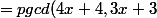 = pgcd ((12x^2 + 16x + 4) -4x(3x + 3), 3x + 3))