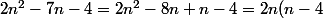 Factorisons l'expression 2n² -7n -4 , on obtient (n-4)(2n+1)