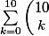 = \sum_{k=0}^{10} \left(\begin{matrix}10\\ k\end{matrix}\right)\times 1^k \times 1^{10-k} = (1+1)^{10} = 2^{10})