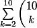 Calculer la somme de k=2 à k=10 de k parmi 10.