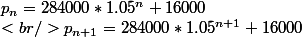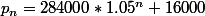 -p_n=1.05p_n-16800-284 000*1.05^n)