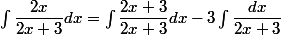 {ln(2x+3)=uv-{uv' soit {ln(2x+3)=xln(2x+3)-{(2x)/(2x+3). Je suis bloqué pour déterminer {(2x)/(2x+3). Merci d'avance