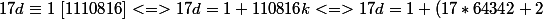 k \\ <=> 17(d - 64342k) - 2k = 1)
