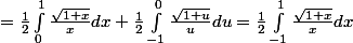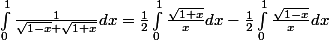 1/(V(1+x)+V(1-x)) = (V(1+x)+V(1-x))/((1+x)-(1-x)) = (1/2).V(1+x)/x + (1/2).V(1-x)/x