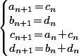 Sinon, si on connait un tant soit peu le calcul matriciel, face aux 4 formules de récurrence çi dessus, il doit venir à l'esprit de poser de façon à écrire les fameuses relations sous la forme avec et .