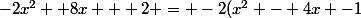 = -2((x-2)^2 - 4 - 1 ) =<br />-2((x-2)^2 - 5) = -2 (x-2 - \sqrt{5}) (x-2 +\sqrt{5}))