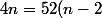 Il ne reste plus qu’à résoudre l’égalité : 4 x n=52 x (n-2), pour conclure que n=13,