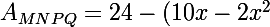 l'aire du quadrilatère MNPQ est égale à l'aire du rectangle ABCD moins l'aire des quatre triangles rectangles de côté x et 6-x ou 4-x.