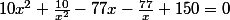 -77(x + \frac{1}{x}) + 150 = 0)