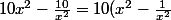 . On vérifie d'abord que x = 0 n'est pas une solution de l'équation déjà (en remplaçant x par 0, on trouve 10 = 0 ce qui n'est pas vrai). Donc on a le droit de diviser par x^2.