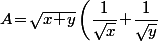 \left(\dfrac{1}{x}\! +\!\dfrac{2}{\sqrt{xy}}\! +\!\dfrac{1}{y}\right)<br />=(x\!+\!y)\left(\dfrac{x\!+\!y}{xy}\! +\!\dfrac{2}{\sqrt{xy}}\right)<br />=t^2\!+\!2t\ \ \text{o\`u}\ \ t\!=\!\dfrac{x+y}{\sqrt{xy}})