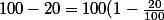 Maintenant ce prix final TOUT ENTIER, je le diminue de 20%. Je dois donc le multiplier par (1 - 20/100) = 0.8