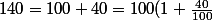 Cela veut dire que pour chaque 100 euros, on paye 40 euros de plus ! Donc le nouveau prix est de 100 + 40 = 140 euros.