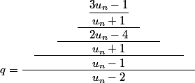 Mon résultat est 3Un-1 sur Un+1 sur 2Un-4 sur Un+1 sur Un-1 sur Un-2