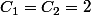 C1 et C2 sont tous les 2 compris entre 1.00 et 2.00 (ex : M1=1.3 et M2=1.9)