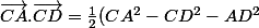 Le résultat est négatif, cela me parait bizarre. D’autant plus que si j’utilise une autre formule tel que : 1/2 * ( || AC || ^2 + || AD || ^2 - || AC - CD || ^2 ), je trouve le même résultat, mais en positif.