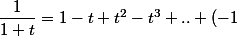 on a la somme des termes de la suite géométrique de raison (-t) et de premier terme 1 qui vaut: