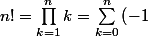 n! = \prod_{k=1}^{n}{k}
