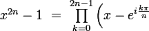 \ = \ \prod_{k=0}^{n-1} \left ( x - e^{i\frac {k\pi}{n}} \right ) \left ( x - e^{-i\frac {k\pi}{n}} \right )(x-1)(x+1))