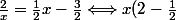 Comme y=y alors 2/x = (1/2)x - 3/2