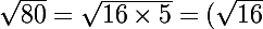 x²=80, donc x=+V80=V(16*5)=V4²*V5=2V5 ou x=-V80=-2V5