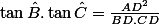 Je rappelle que tg B = AD//DB( triangle rect. ADB) et tg C = AD/DC